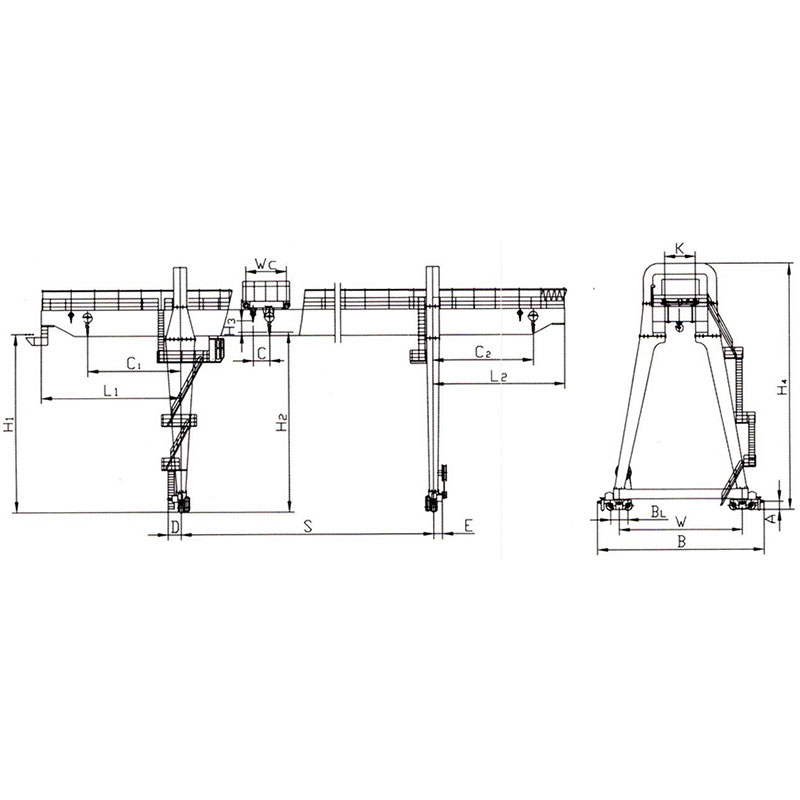 Двухбалочный козловой кран является козловым краном, разработанным и изготовленным для больших грузоподъемностей (5-500 т), средних пролетов (7,5-50 м), с хорошей устойчивостью, подходящим для внутренних и открытых сред без несущих балок. Его класс работы может достигать A5, A6. Он обладает такими характеристиками, как высокая несущая способность, хорошая устойчивость, высокий коэффициент использования площадки, большая рабочая зона, широкая адаптируемость, высокая универсальность и другие, широко используется в портах, причалах, грузовых площадках, цехах.